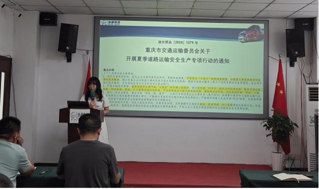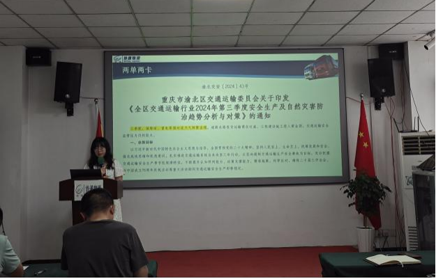 會議首先由安全部負責人唐堯講話,傳達渝北道運〔2024〕39號重慶市渝北區道路運輸事務中心關于行業安全運行趨勢分析及風險防范的通報(2024年3季度);傳達渝交便函〔2024〕1275 號重慶市交通運輸委員會關于開展夏季道路運輸安全生產專項行動的通知;傳達重慶市交通運輸委員會關于深刻汲取陜西省柞水縣高速公路橋梁垮塌災害教訓切實加強汛期地質災害防范應對工作的通知;傳達渝北交安〔2024〕43號重慶市渝北區交通運輸委員會關于印發《全區交通運輸行業2024年第三季度安全生產及自然災害防治趨勢分析與對策》的通知;傳達渝北防辦〔2024〕24號重慶市渝北區消防安全委員會辦公室轉發國家消防救援局關于深刻汲取四川自貢“7· 17”火災教訓切實加強當前消防安全工作的緊急通知;傳達渝減辦〔2024]28號重慶市減災委員會辦公室重慶市安全生產委員會辦公室關于深入貫徹落實習近平總書記重要指示精神汲取教訓毫不松懈抓好汛期災害防范應對工作的緊急通知;傳達渝北道運〔2024〕38號重慶市渝北區道路運輸事務中心關于印發道路運輸企業和城市客運企業安全生產重大事故隱患判定標準(試行)宣貫培訓方案的通知等文件精神,要求全體員工認真按照上級文件精神做好安全生產各項工作。
