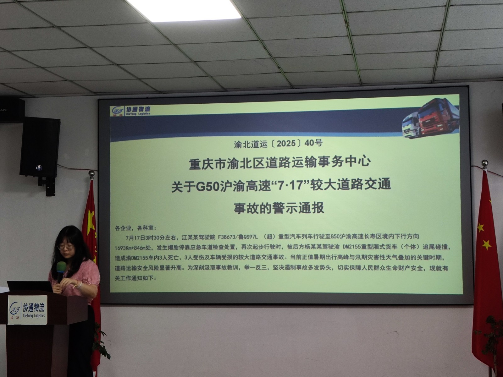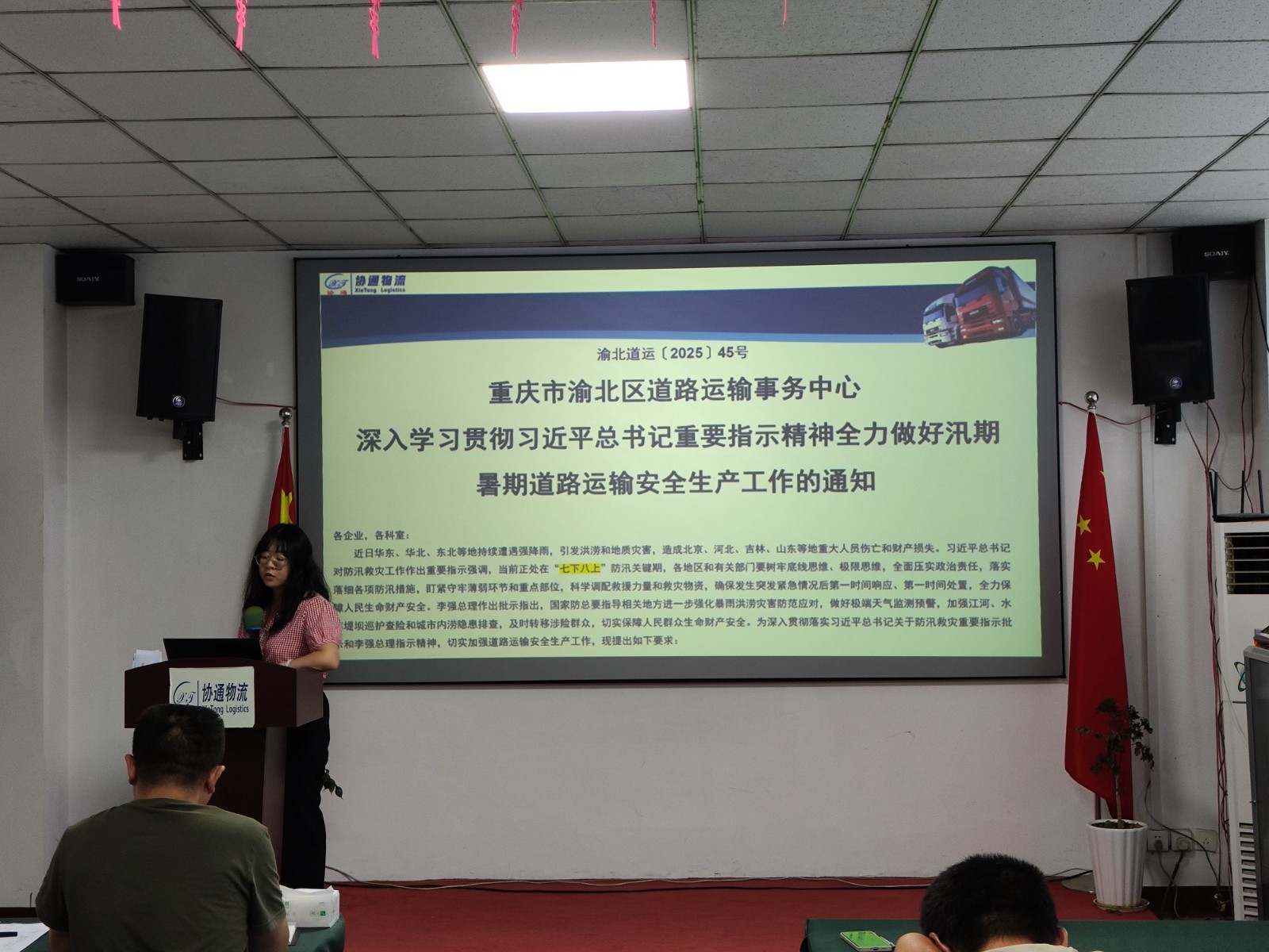 2025年8月16日,重慶協通國際物流有限公司月度員工安全教育培訓會在公司三樓會議室召開,公司總經理唐云忠主持會議并講話。