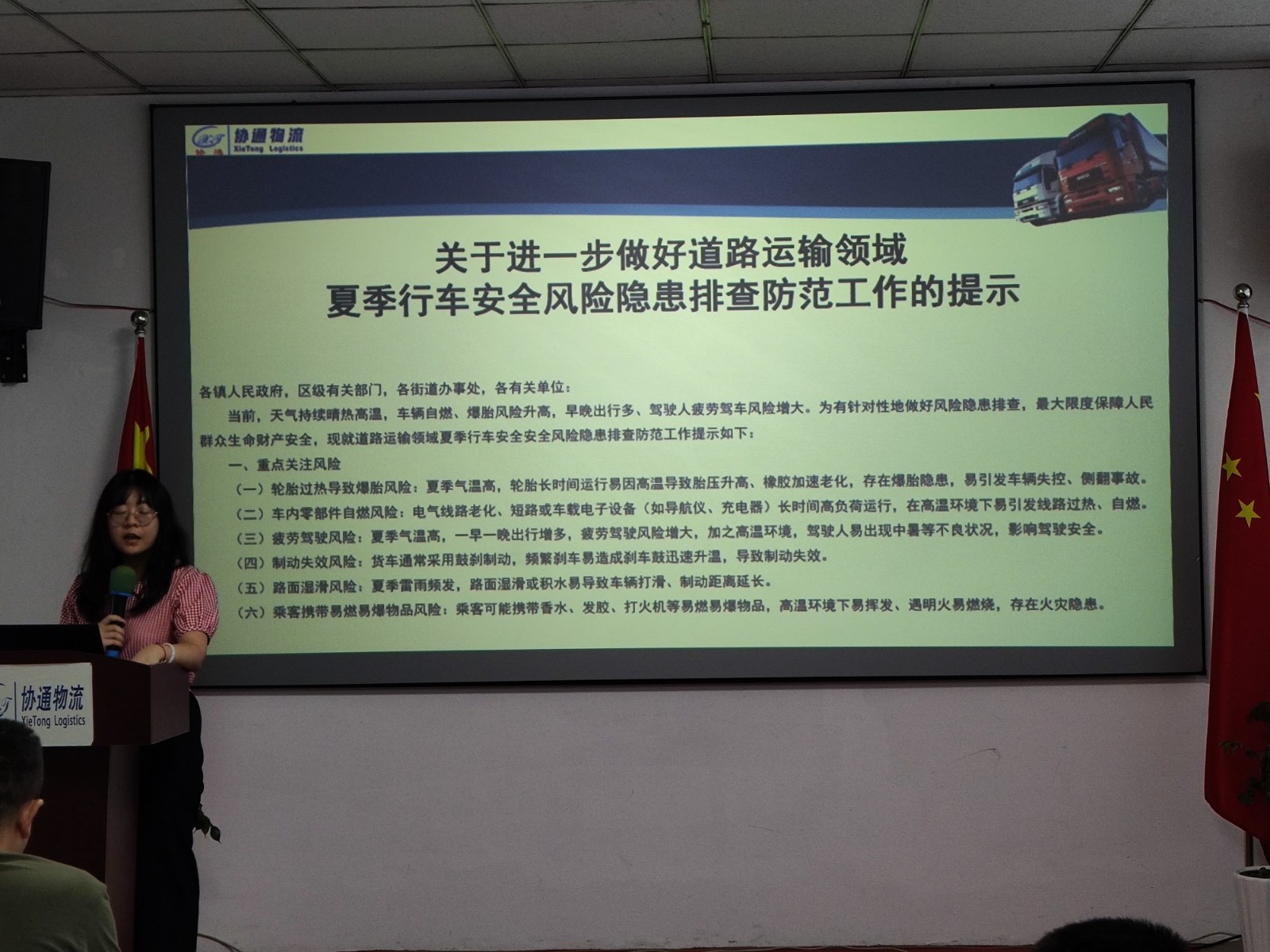 唐堯傳達了協通7月員工安全履職情況,唐堯表示7月較6月整體違章率有所升高,雖然多數員工能嚴格遵守安全操作規程和交通法律法規,但是也有部分員工對安全生產工作產生松懈,在行車過程中存在不規范行為,需在后續工作中加以改進。