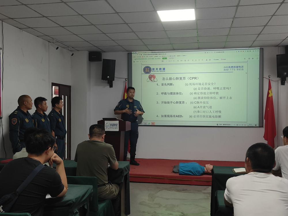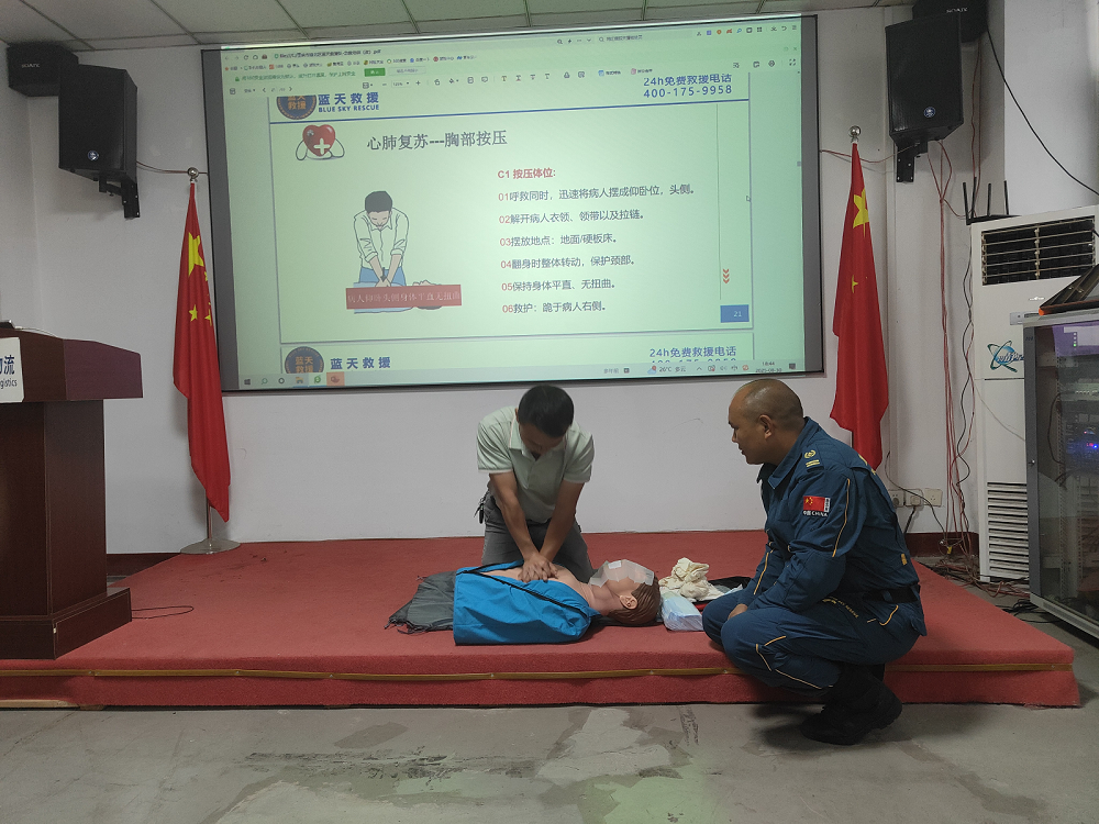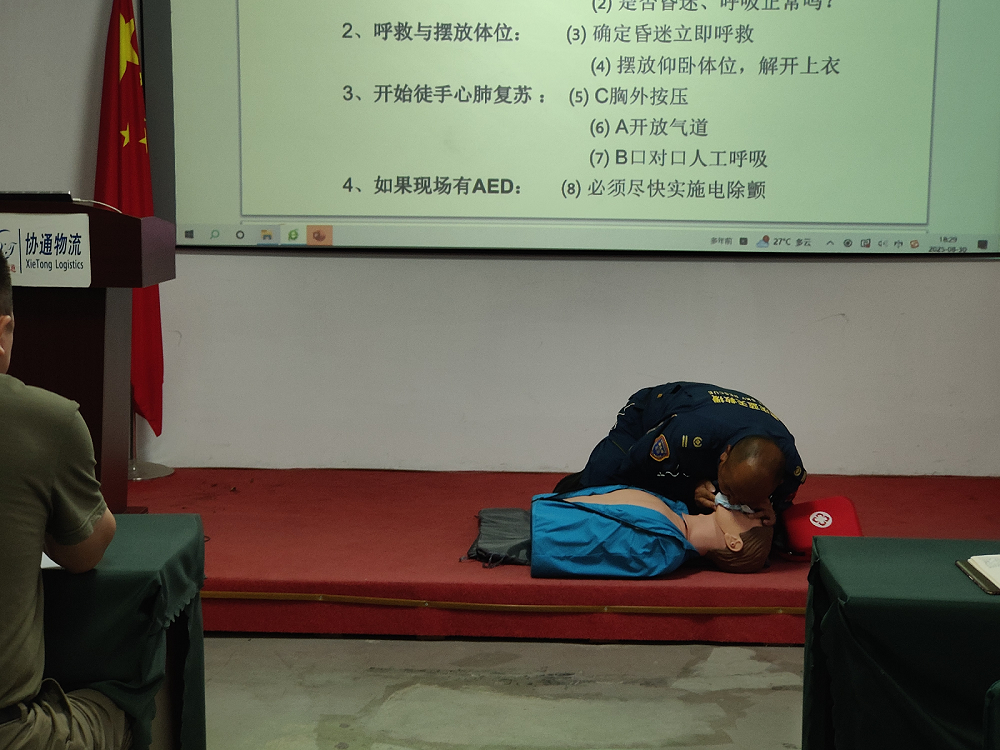 重慶藍天救援隊隊員以 “急救技能實操應用” 為核心,重點講解心肺復蘇(CPR)、海姆立克急救法、創傷止血包扎三大核心急救技術。針對心肺復蘇,詳細拆解 “判斷意識與呼吸”“胸外按壓深度與頻率(5-6 厘米、100-120 次 / 分鐘)”“人工呼吸操作要點”“AED 使用流程” 等關鍵步驟,結合辦公、倉儲、運輸場景中可能出現的 “職工突發心臟驟停”“異物卡喉”“貨物砸傷出血” 等情況,分析急救黃金時間與操作誤區,強調 “先判斷、再施救,規范操作才能降低二次傷害”。